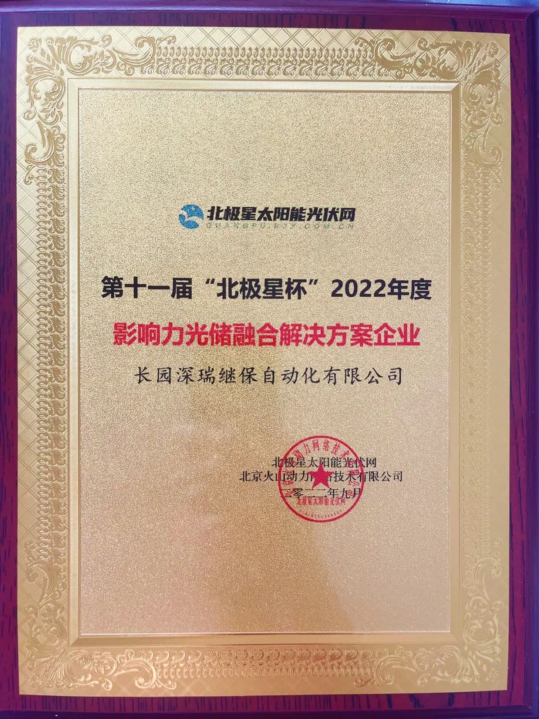 9月23日,“携光而行·领跑零碳”2022年光伏新时代论坛暨第十一届‘北极星杯’光伏影响力品牌评选颁奖典礼在江苏南京完美落幕。来自光伏行业权威专家、光伏产业链各环节优秀企业代表等百余位来宾欢聚一堂,共襄盛举。333tiyu.com深瑞继保自动化有限公司(以下简称“333tiyu.com深瑞”)受邀出席,再度荣获“影响力光储融合解决方案企业”、“影响力特色光伏应用项目案例企业” 两大奖项。